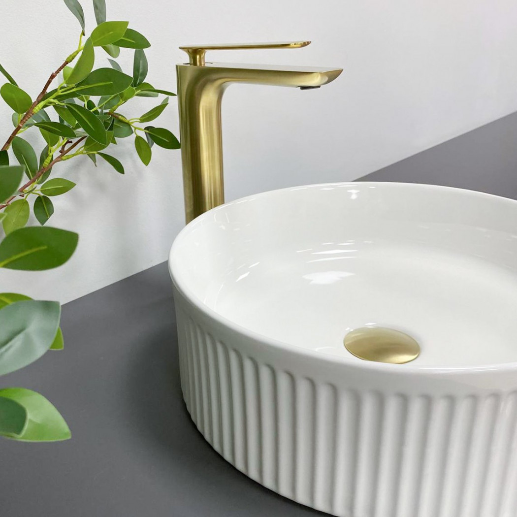 Накладные раковины серии VBI BRINDISI пользуются высоким спросом и доступны в белом глянцевом исполнении. Раковина круглой формы, гладкая внутри, а снаружи имеет рифленую текстуру, придающую современный вид. Предназначена для установки на столешницу и изготовлена из высококачественной керамики.