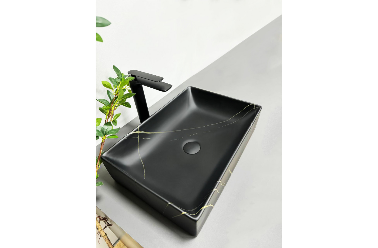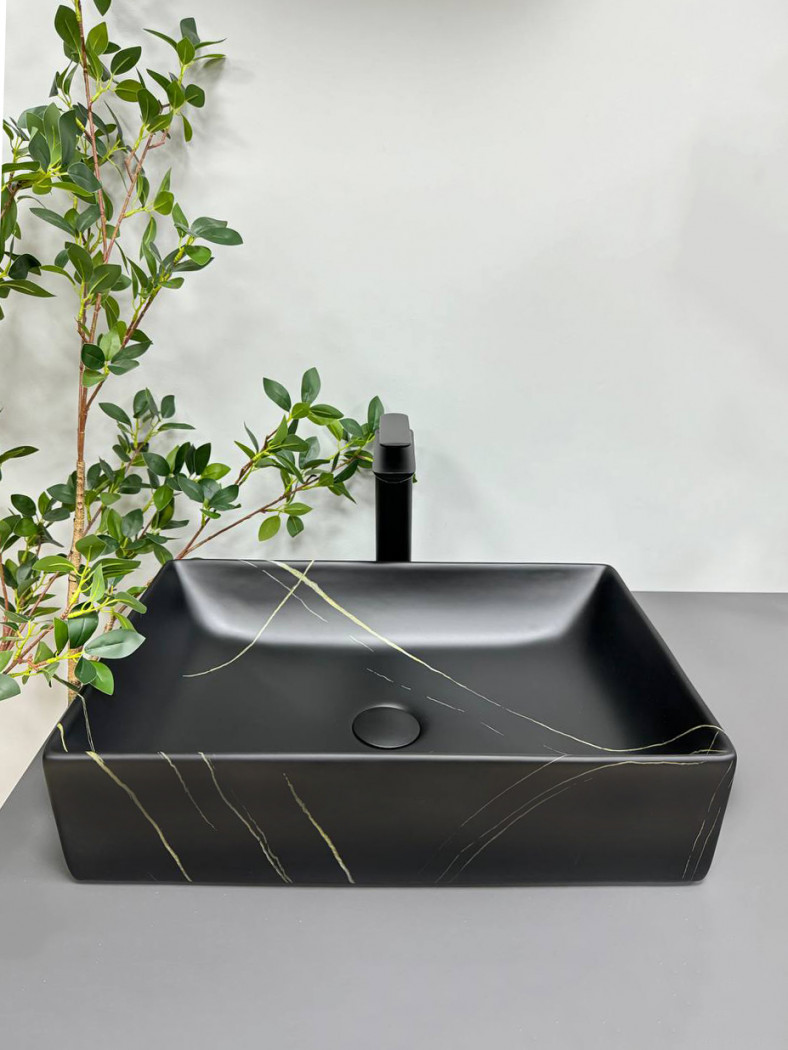 Накладные раковины серии VBI LATINA пользуются высоким спросом и доступны в разных цветах в матовом исполнении. Имеет четкую прямоугольную форму и идеальные пропорции с прямыми углами, но внутри они сглажены, поэтому ее легко поддерживать в чистоте. Модель VBI LATINA MARBLE имеет уникальный узор, в основе которого черный цвет и матовое покрытие, что придает свой уникальный шарм.