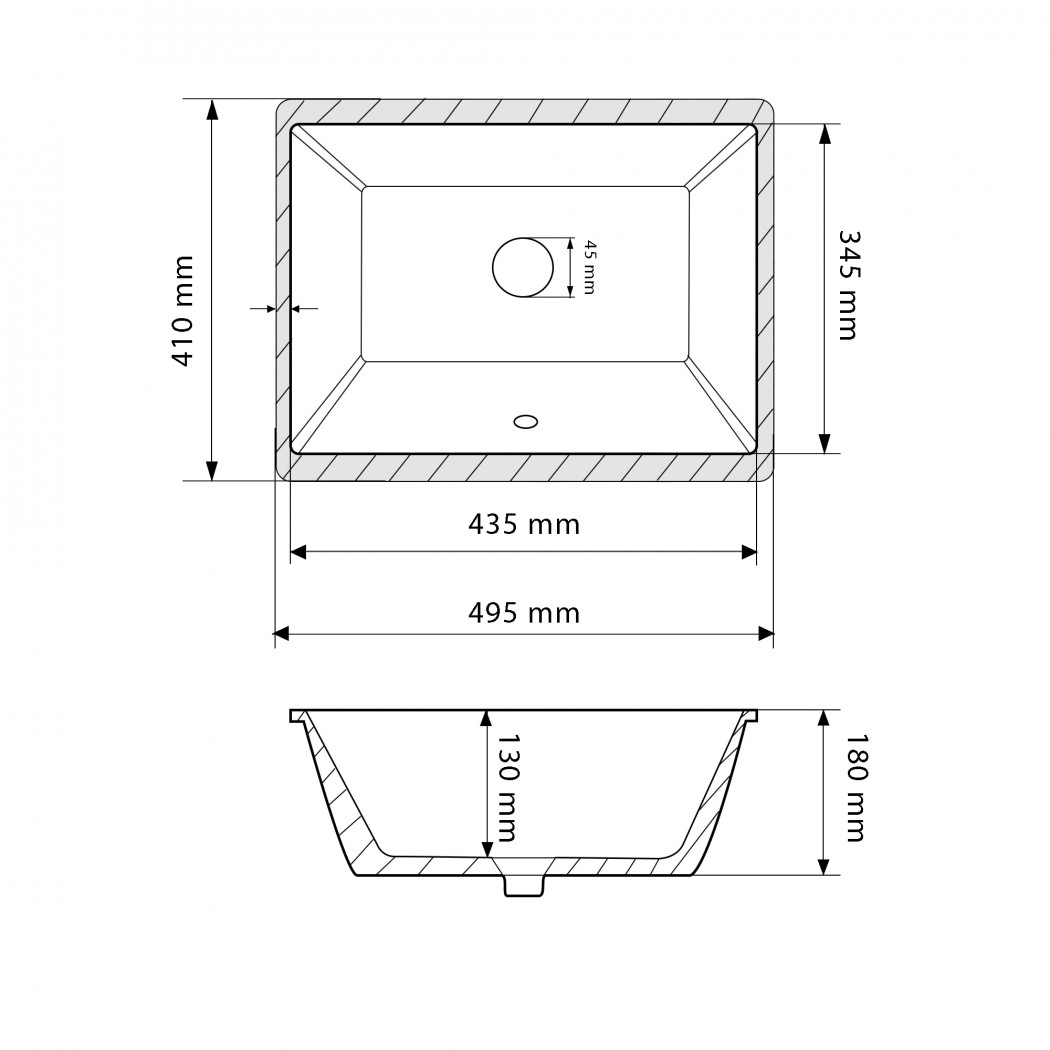 Врезная раковина VBI MERANO имеет комфортную прямоугольную форму. Является нижней врезной, которая монтируется снизу и будет на уровне со столешницей. Она изготовлена из керамики в белом цвете и имеет отверстие для перелива.