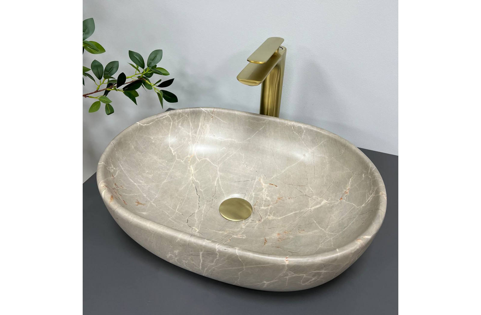 Накладные раковины серии VBI MODENA пользуются высоким спросом и доступны в разных размерах и разных цветах в глянцевом или матовом исполнении. Изготовлена из высококачественной керамики и имеет овальную форму с гладкой поверхностью. Раковина отличается современным дизайном с закругленным силуэтом, что придает уникальность и утонченность. Модель VBI MODENA BEIGE STONE – имеет уникальный узор, напоминающий камень с матовым покрытием, придающий свой шик.