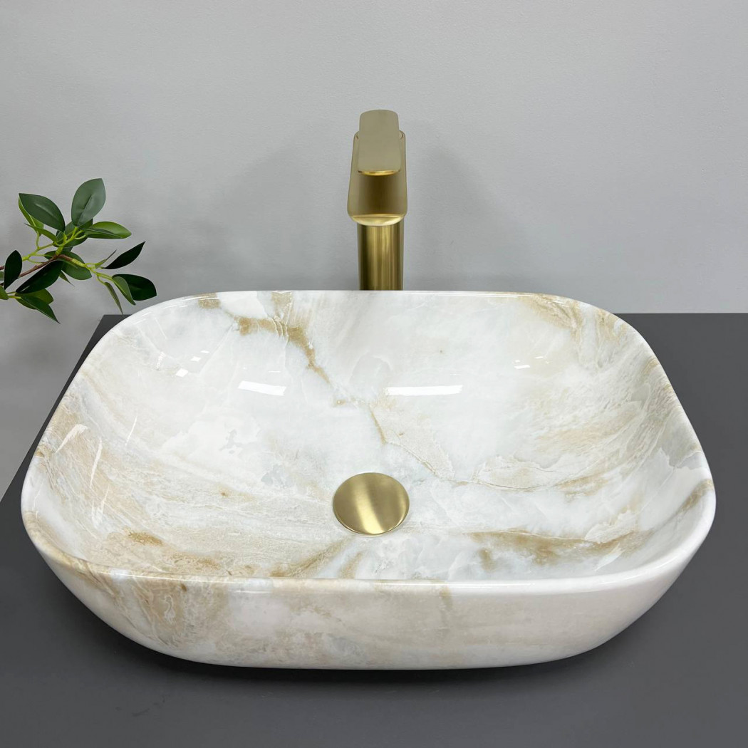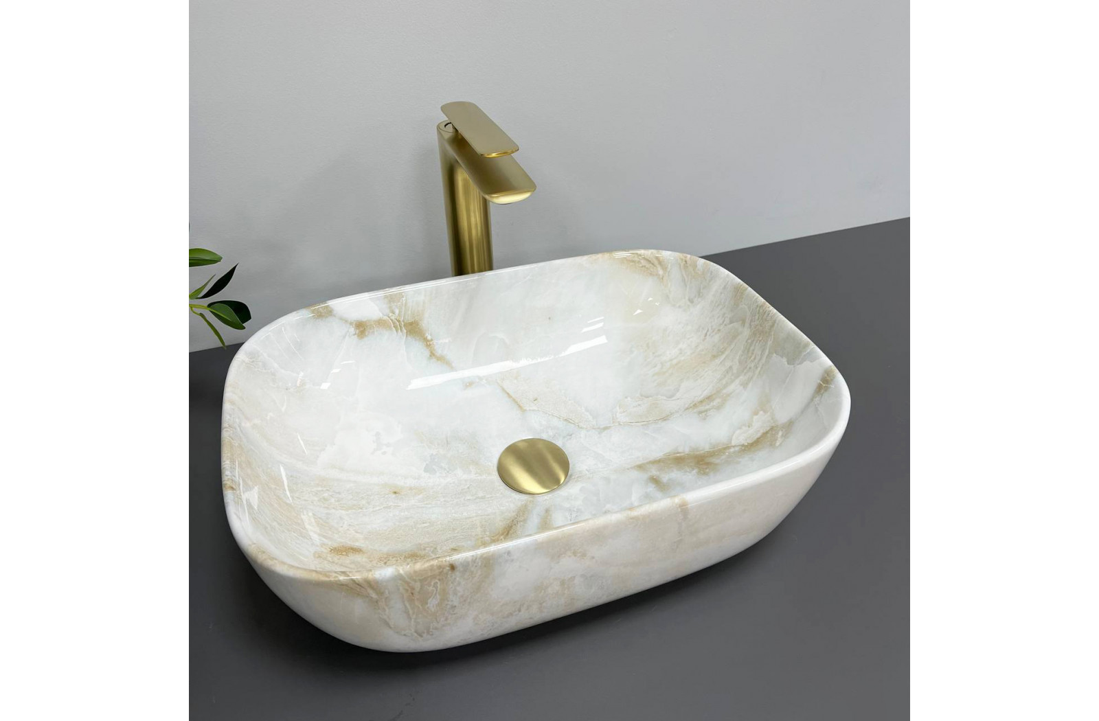 Накладные раковины из коллекции VBI RAVENNA имеют современную прямоугольную форму со смягченными закруглениями. Универсальный дизайн позволяет подобрать смеситель любой формы. Раковина изготовлена из керамики высочайшего качества, отличающейся высокими гигиеническими свойствами. Модель VBI RAVENNA LABRADORITE имеет неповторимый и блестящий узор с глянцевым покрытием.