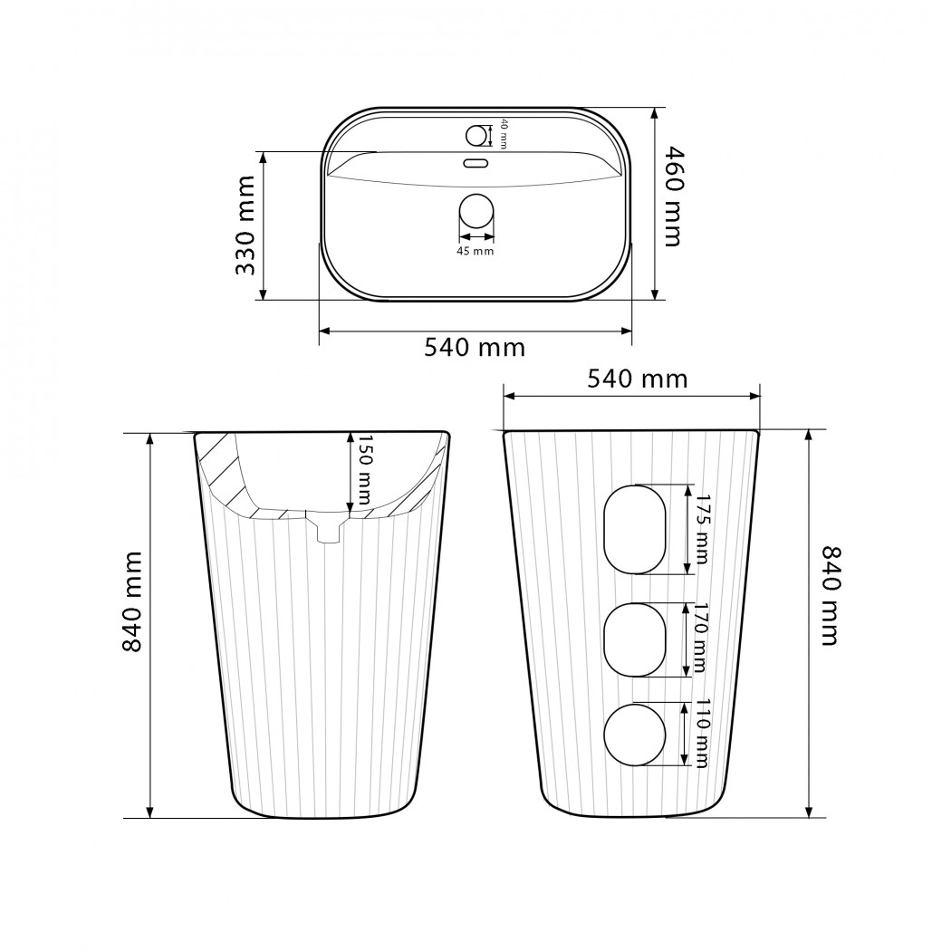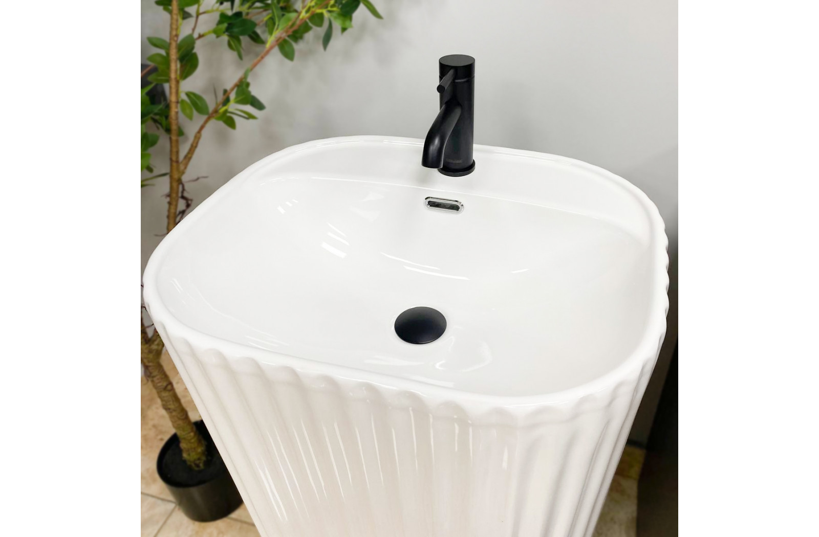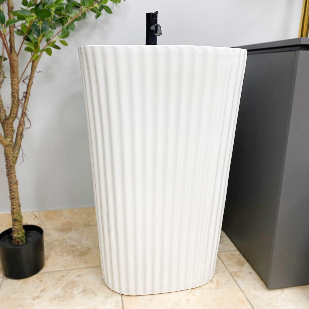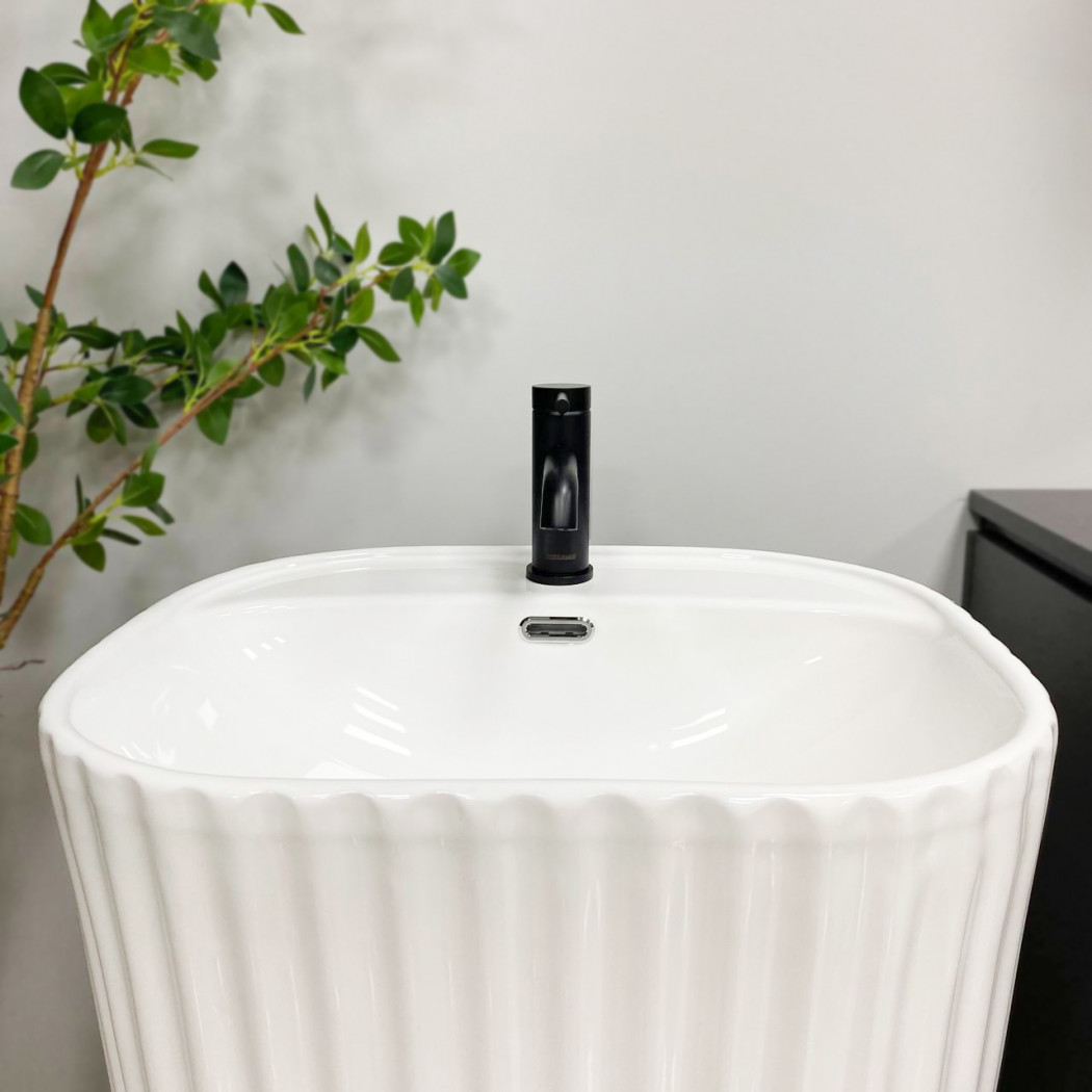 Отдельностоящая раковина VBI TARSIA изголовлена из высококачественной керамики. Раковина имеет как отверстие под смеситель, так и для перелива. Это делает раковину функциональной и позволяет сэкономить место в ванной комнате. В раковине есть отверстия в задней стенке и в дне, для любого удобного способа подключения к выходу канализации. Снаружи умывальник имеет рифленую текстуру, придающую уникальный вид.