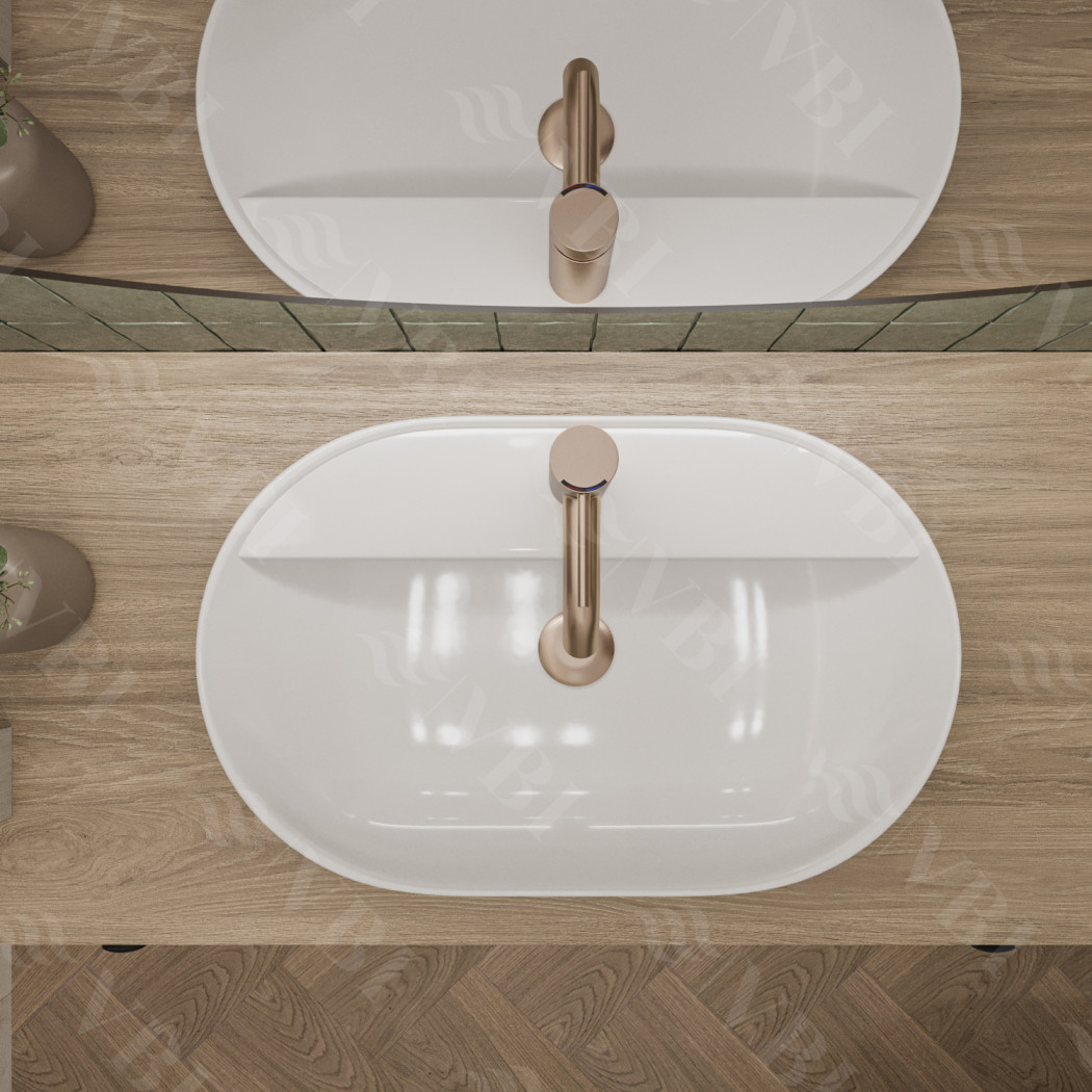 Накладные раковины серии VBI TERNI пользуются высоким спросом и доступны в разных размерах и в классическом белом цвете в глянцевом исполнении. Накладная по способу установки раковина имеет отверстие под смеситель. Что делает ее функциональной и позволяет сэкономить драгоценное пространство столешницы. Модель VBI TERNI имеет классический дизайн и безупречную овальную форму.