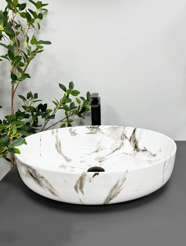 Накладные раковины серии VBI UDINE пользуются высоким спросом и доступны в разных цветах в глянцевом или матовом исполнении. Раковина поражает своими неповторимыми узорами и овальной формой с идеально изящными линиями. Накладная по способу упорядочения раковина, позволяет подобрать смеситель в любом стиле. Модель VBI UDINE CARRARA – имеет уникальный узор с глянцевым покрытием.