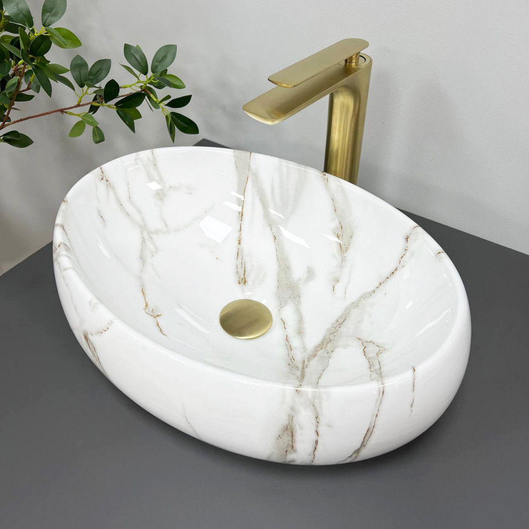 Накладные раковины серии VBI VENETO пользуются высоким спросом и доступны в разных размерах и цветах в глянцевом или матовом исполнении. Накладная по способу установки раковина имеет овальную форму с округленными стенками наружу, что полностью довершает дизайн. Модель VBI VENETO LAVA – выполнена с неповторимым узором, имитирующим мрамор с глянцевым покрытием.