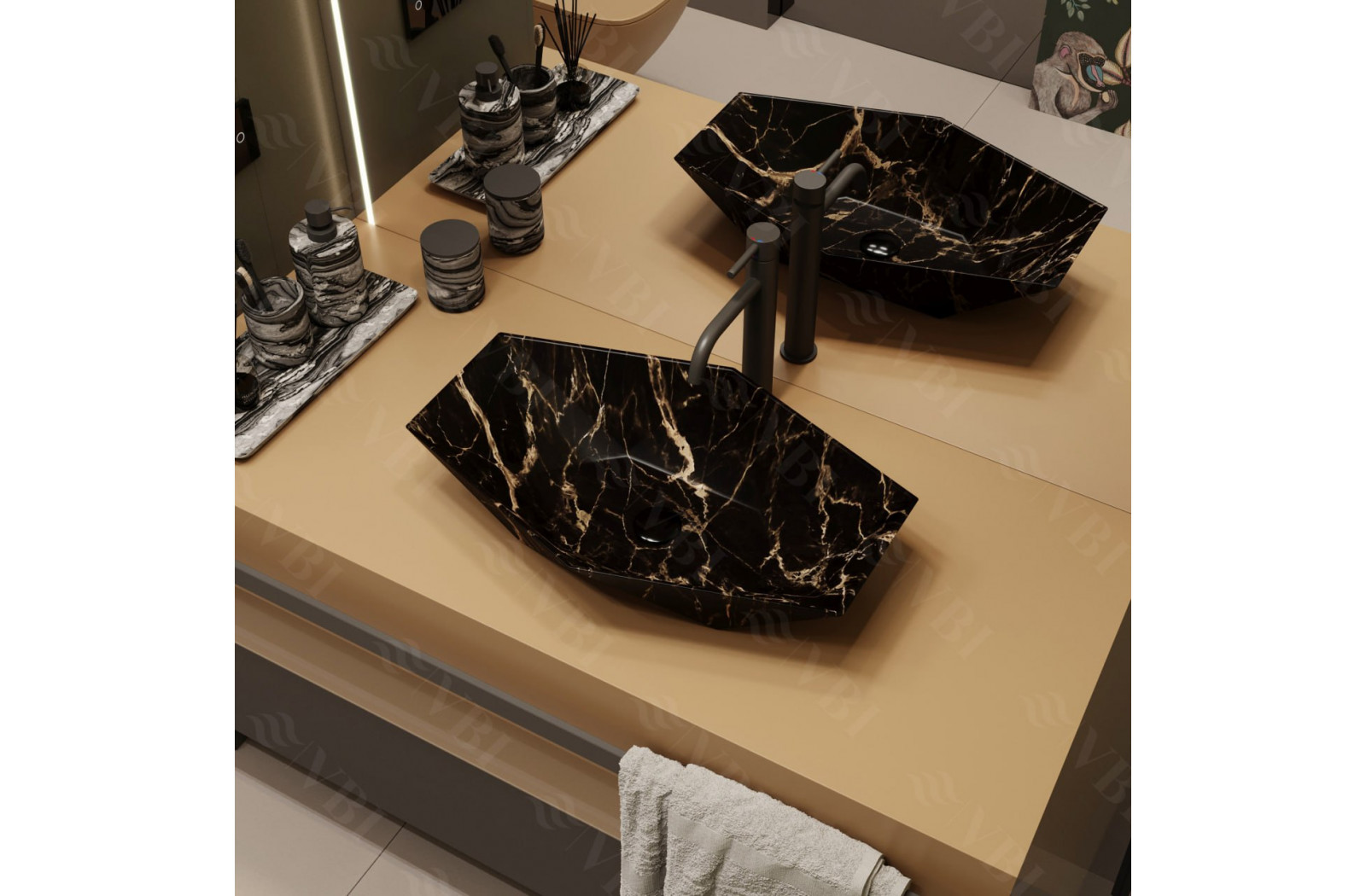Накладные раковины из серии VBI VENEZIA пользуются высоким спросом и доступны в разных размерах и цветах в глянцевом или матовом исполнении. Раковина создана по современным трендам с уникальным дизайном в стиле Low Poly. У нее нестандартная форма плотно расположенных геометрических фигур, хорошо играющих на свете. Накладная по способу установки раковина, позволяет легко подобрать смеситель в любом стиле.