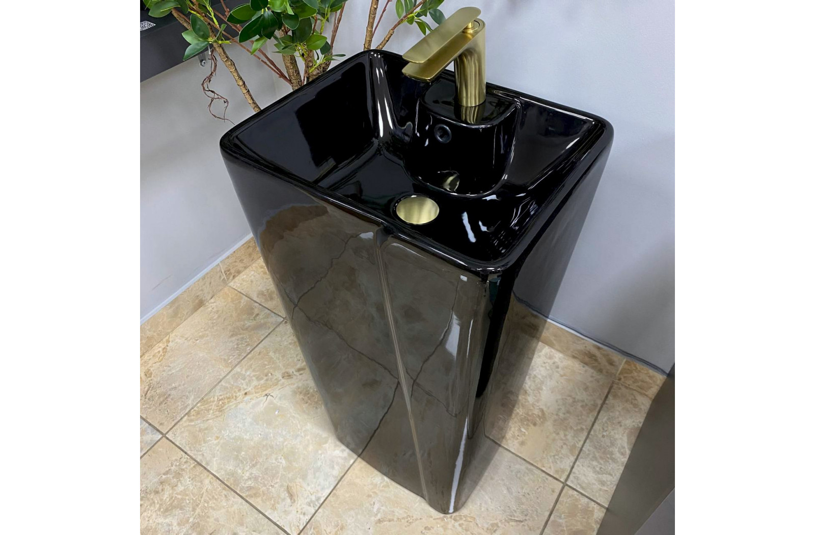 Напольный умывальник VBI VERESE меет насыщенный черный глянцевый цвет. Форма VERESE с легкими закругленными углами и тонкой линией по всей высоте. Cверху вниз она немного сужается, что придает раковине легкости и будет гармонично смотреться в ванной комнате в любом стиле.