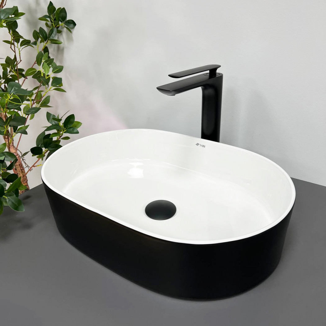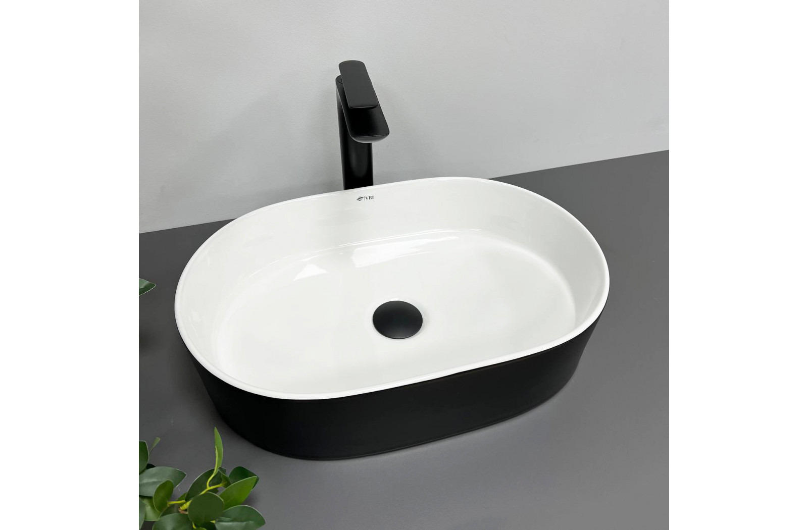 Накладные раковины серии VBI VERONA пользуются высоким спросом и доступны в разных размерах и цветах в глянцевом или матовом исполнении. Накладная по способу установки раковина имеет классическую овальную форму с четкими линиями. Это позволяет подобрать смеситель, как круглой, так и квадратной формы. Модель VBI VERONA 50 BLACK WHITE - имеет внутри белоснежный цвет с глянцевым покрытием, а снаружи трендовый черный цвет с матовым покрытием.