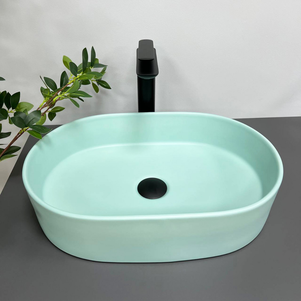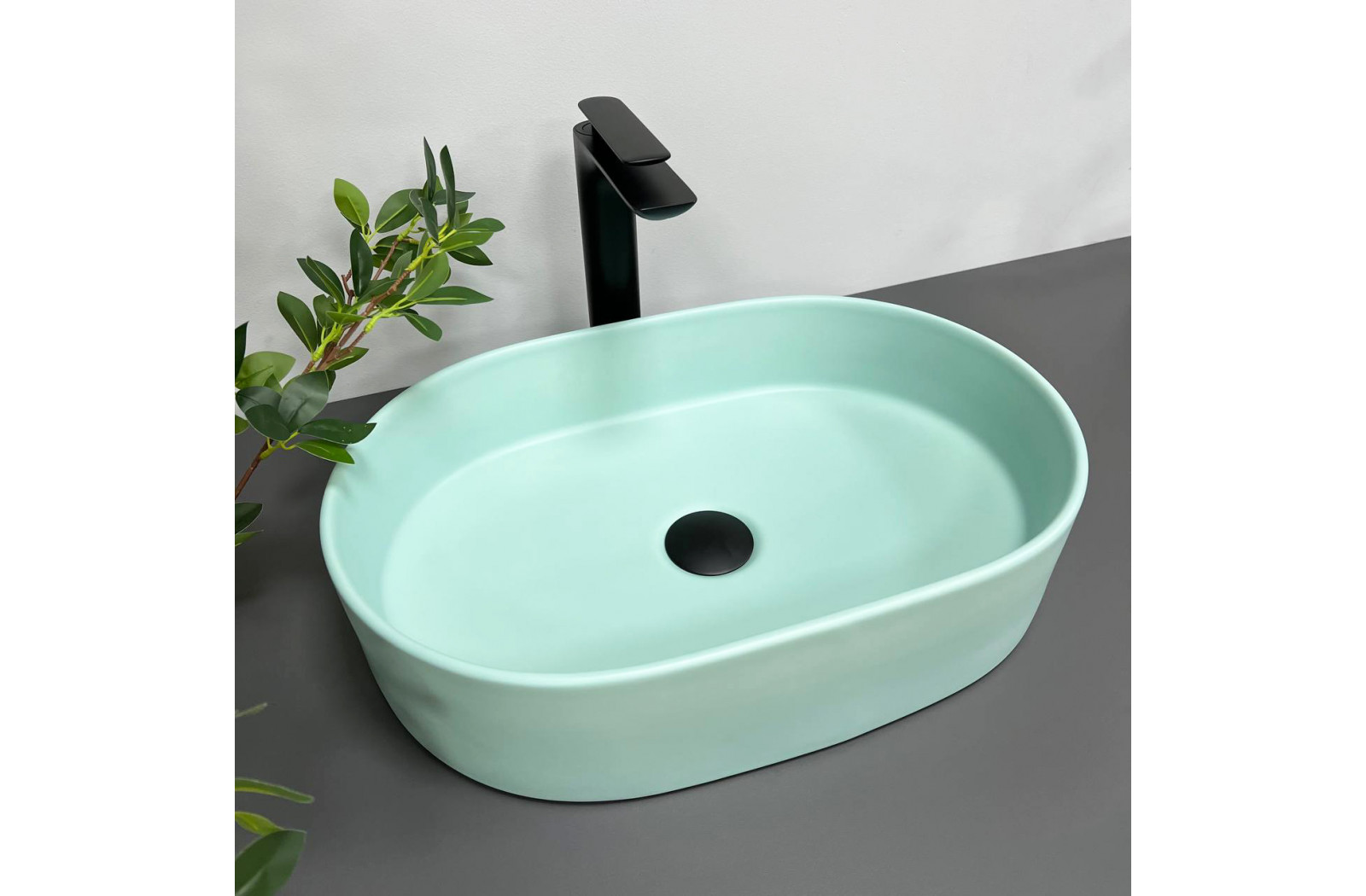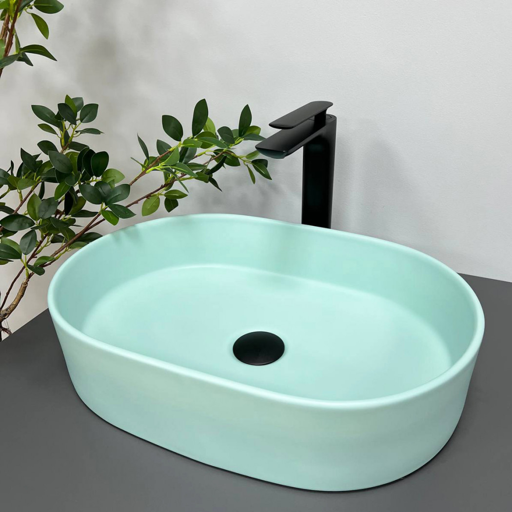 Накладные раковины серии VBI VERONA пользуются высоким спросом и доступны в разных размерах и цветах в глянцевом или матовом исполнении. Накладная по способу установки раковина имеет классическую овальную форму с четкими линиями. Это позволяет подобрать смеситель, как круглой, так и квадратной формы. Модель VBI VERONA 50 TURKUS – имеет трендовый светло-зеленый ментоловый цвет, а матовое покрытие придает общий шарм.