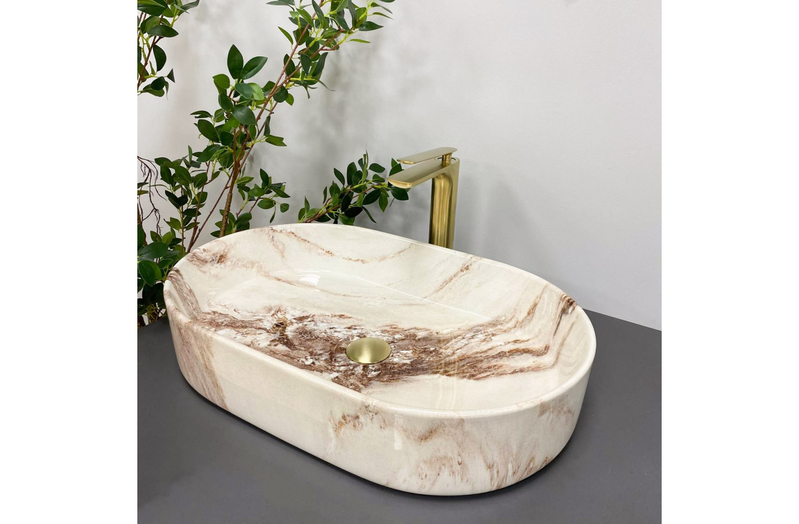 Накладные раковины серии VBI VERONA пользуются высоким спросом и доступны в разных размерах и цветах в глянцевом или матовом исполнении. Накладная по способу установки раковина имеет классическую овальную форму с четкими линиями. Это позволяет подобрать смеситель, как круглой, так и квадратной формы. Модель VBI VERONA 60 ONYX – имеет уникальный рисунок, а глянцевое покрытие отражает свет, создавая впечатление увеличения и яркости.