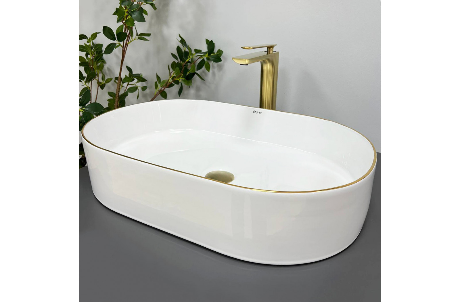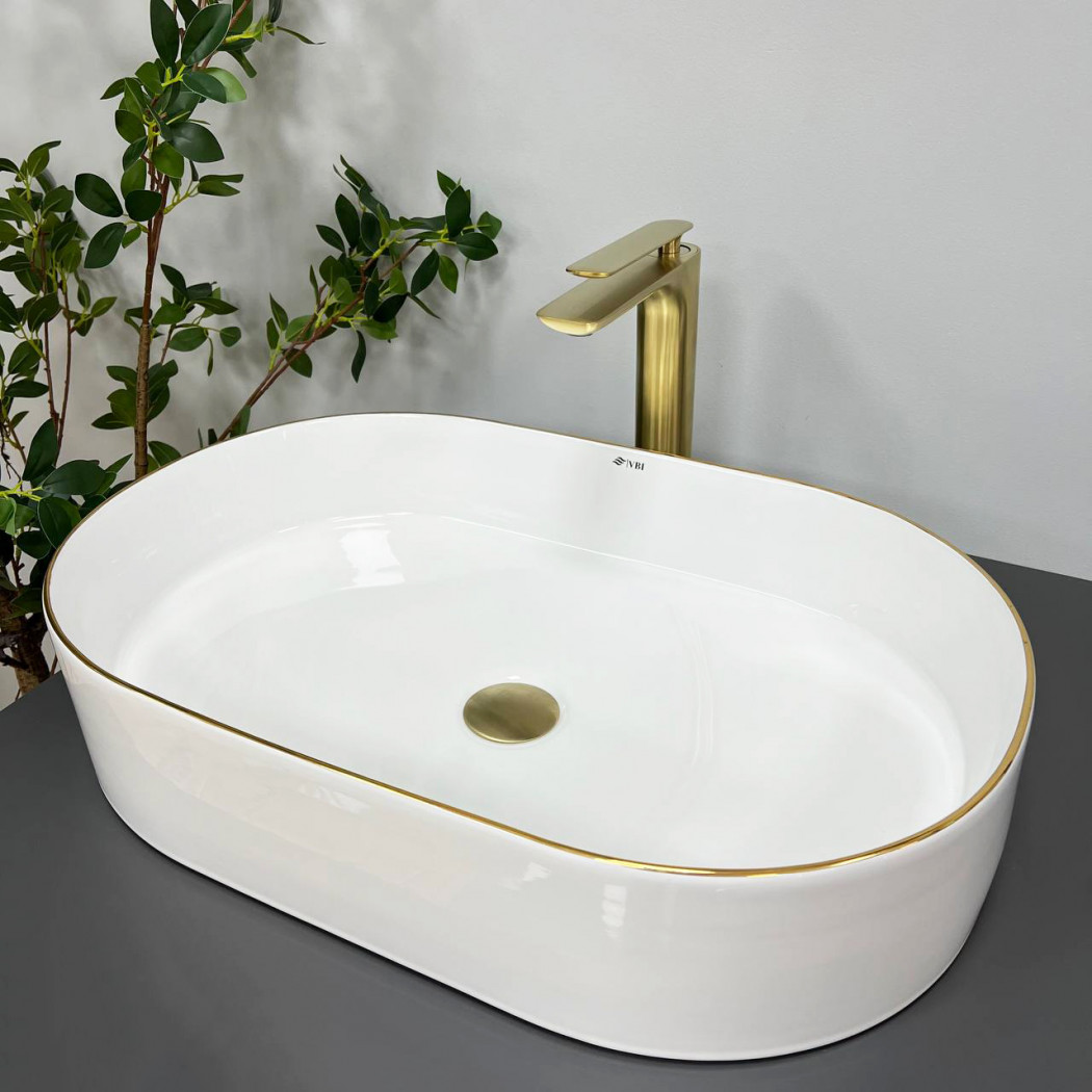 Накладные раковины серии VBI VERONA пользуются высоким спросом и доступны в разных размерах и цветах в глянцевом или матовом исполнении. Накладная по способу установки раковина имеет классическую овальную форму с четкими линиями. Это позволяет подобрать смеситель, как круглой, так и квадратной формы. Модель VBI VERONA 60 GOLD EDGE – имеет белый цвет, а глянцевое покрытие отражает свет, создавая впечатление увеличения и яркости.
