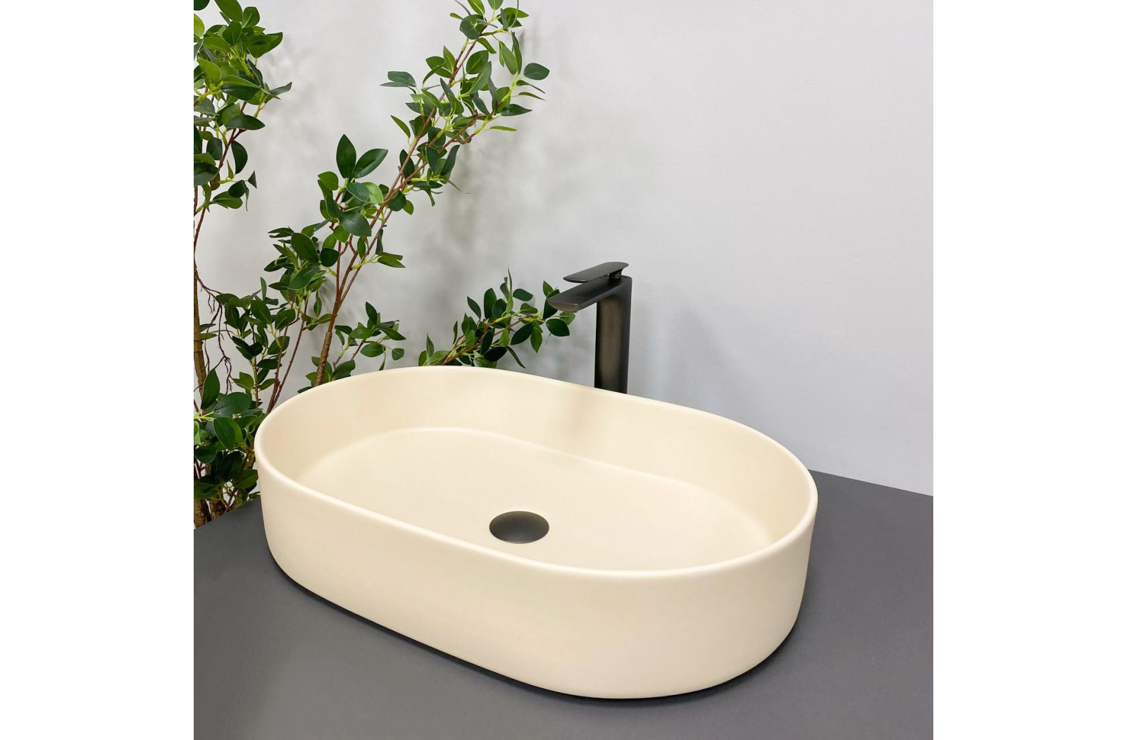 Накладні раковини із серії VBI VERONA користуються високим попитом та доступні в різних розмірах та кольорах у глянцевому, чи матовому виконанні. Накладна за способом встановлення раковина, має класичну овальну форму з чіткими лініями. Це дозволяє підібрати змішувач, як круглої, так і квадратної форми. Модель VBI VERONA 70 BEIGE - має трендовий бежевий нюдовий колір, а матове покриття додає загального шарму.