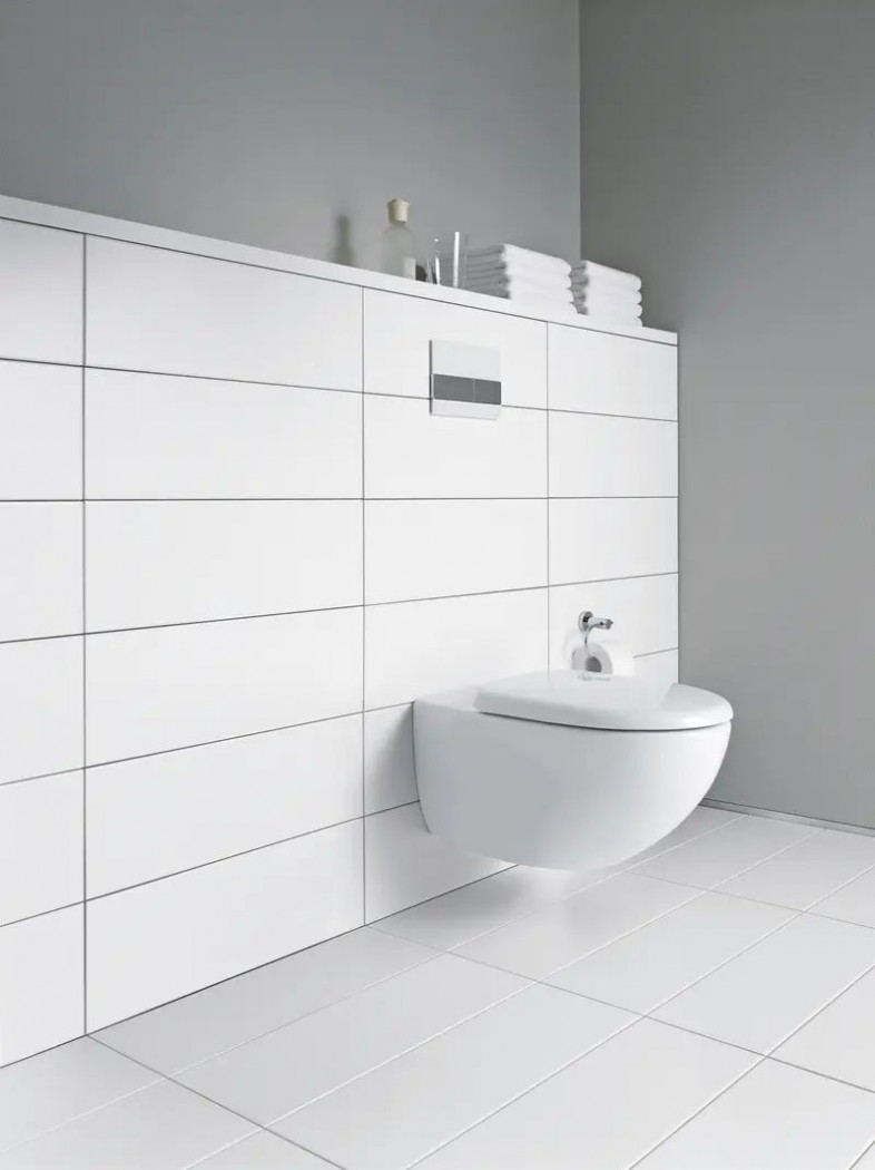 - Современный подвесной дизайн подходит для любых интерьеров ванной комнаты.