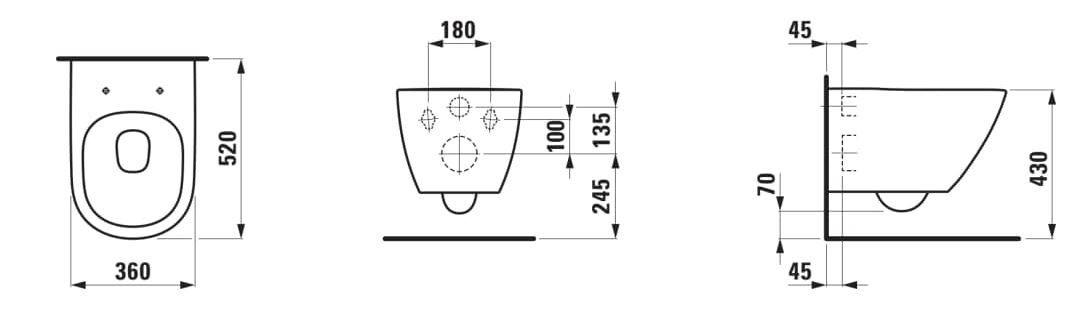 Унитаз подвесной Laufen LUA Rimless H8660820000001 воронкоподобный слив 52х36 см скрытый крепеж + крышка Soft-Close SlimХАРАКТЕРИСТИКИ