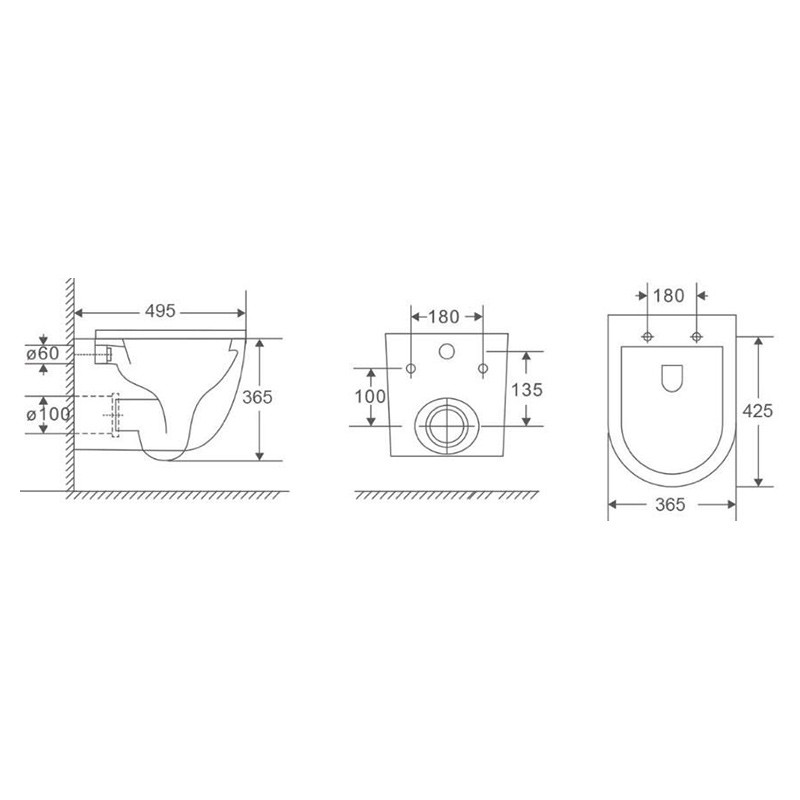 Габариты унитаза (ВхШхГ): 365x365x495