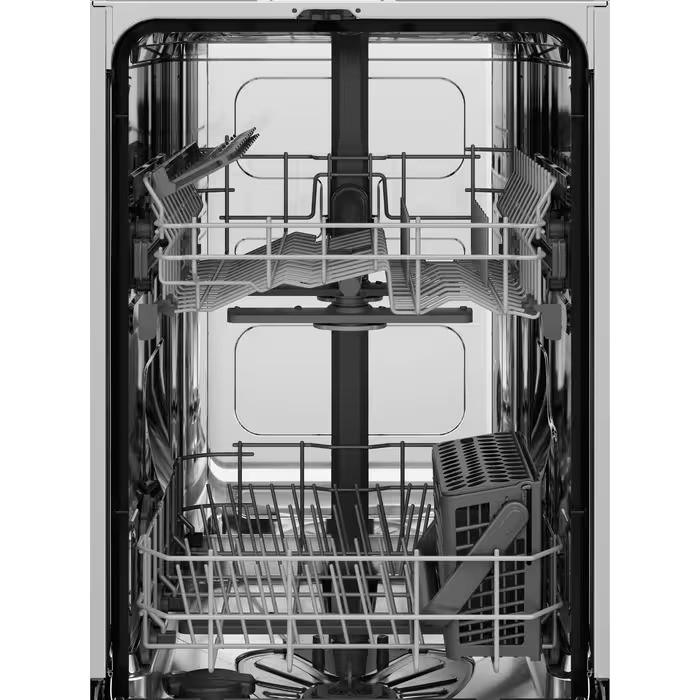 Вбудовувана посудомийна машина Electrolux EEA71210L шириною 45 см оснащена великою кількістю корисних функцій. Вона пропонує оптимальний набір програм, що дозволяє легко підібрати потрібні налаштування для отримання відмінного результату миття. Модель розрахована на дев’ять комплектів посуду та підтримує кілька програм миття з різними температурними режимами, що дозволяє підібрати оптимальний цикл для щоденного або інтенсивного очищення. Технологія AirDry забезпечує природну циркуляцію повітря для завершення сушіння посуду — це втричі ефективніше, ніж системи із зачиненими дверцятами. Після завершення програми дверцята автоматично відкриваються приблизно на 10 см, що дозволяє повітрю циркулювати та забезпечує чудові результати миття й сушіння. Індикатор «Промінь на підлозі» дозволяє з першого погляду зрозуміти, чи процес миття вже завершився. Витрати води й електроенергії оптимізовані для щоденного використання, що робить модель практичним вибором для сім’ї.