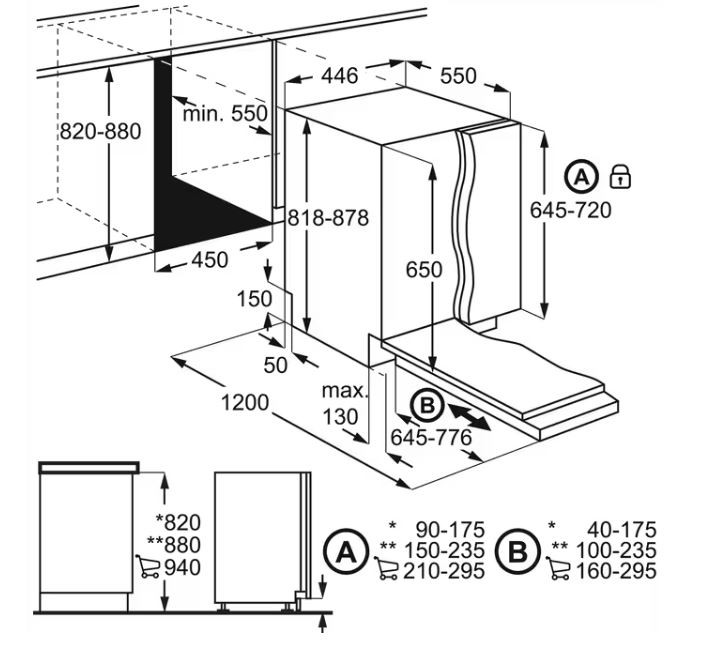 PerfectFit — просте встановлення. Система шарнірів Sliding Hinges допомагає легко інтегрувати посудомийну машину в нішу без підрізання плінтуса та з точним підлаштуванням під висоту меблів.